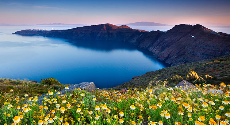 Spring Santorini weather is beautiful. It’s sunny and warm, without being uncomfortably hot. The scenery in Oia is always breathtaking, but in spring, with grassy hills and flowers in bloom, it’s a treat you won’t be able to find in any other season.