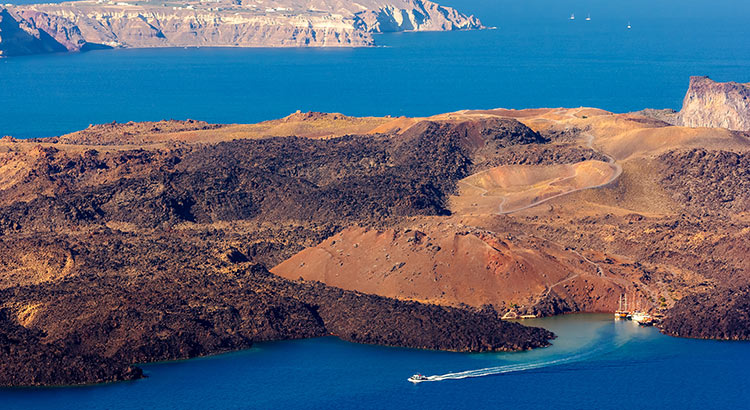The island of Santorini, Greece has been shaped by a number of volcanic eruptions, especially from the Minoan era. It was a volcanic eruption that formed the stunning sight of the Santorini caldera and separated Santorini from Thirassia. It was a volcanic eruption that buried the city of Akrotiri, now excavated by archaeologists to be toured by visitors.