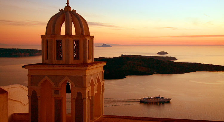 The Santorini churches are an integral part of the island and the lives of its people. Sharing a vernacular Santorini architecture, they create awe with their admirable frescos, blue domes, square, white edifices, adorable bell towers, elaborate arches, and beautiful yards. Some of the most spectacular samples of Byzantine and Venetian architecture that blend harmoniously with the island’s landscape are found in Oia, such as the Church of Panagia, as well as Imerovigli and Fira (see the Catholic Cathedral of Fira).