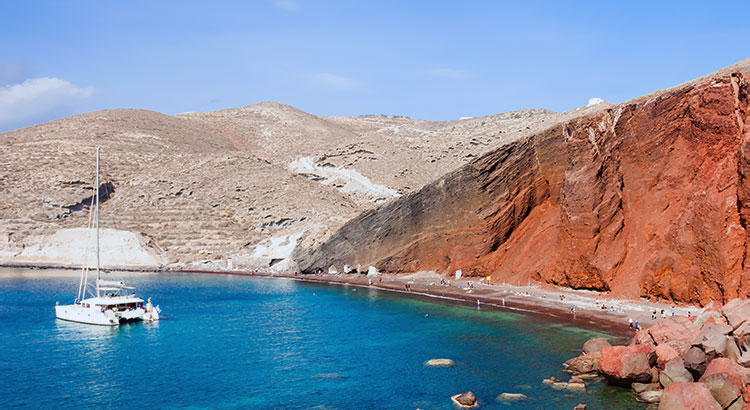One more outdoor wonder you can enjoy in Santorini is Red Beach. Red Beach is possibly the most striking beach in Santorini, known for its tall red cliffs and deep red sand. The red hues make the blue of the water stand out brilliantly.