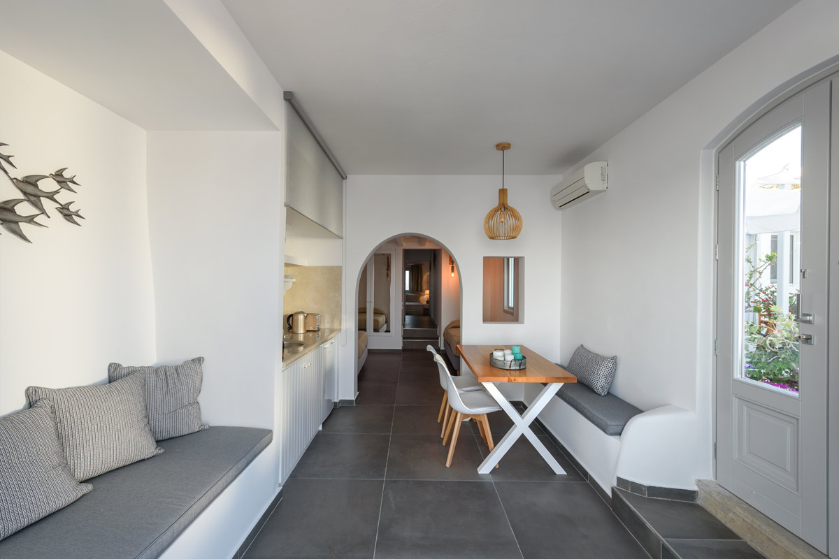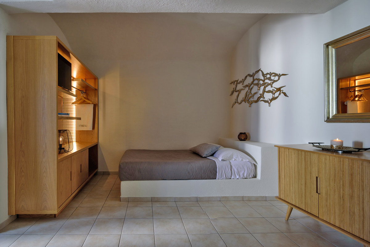 From the cool embrace of our cave villas and studios to the gentle whispers of our rooms and apartments, every space invites you to indulge in the pinnacle of Cycladic sophistication.